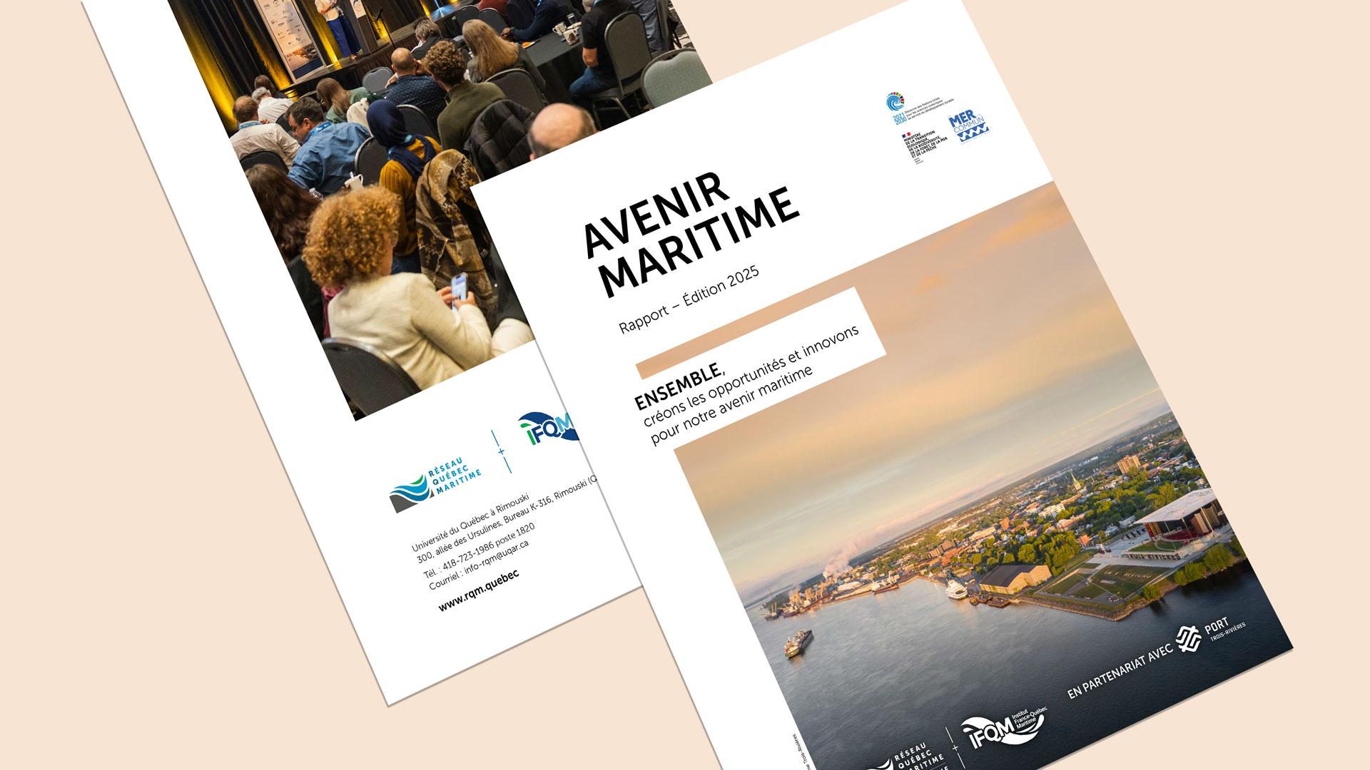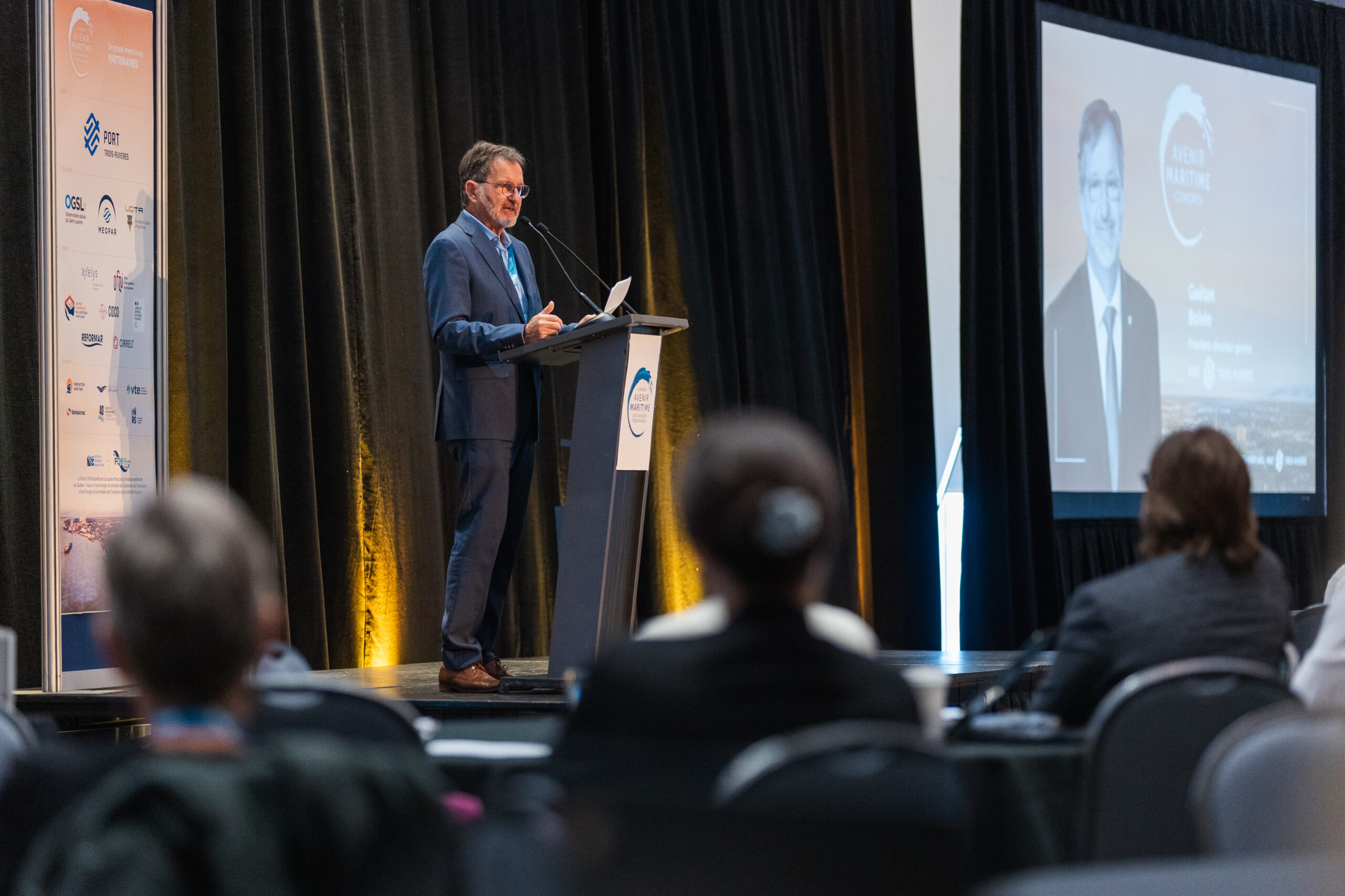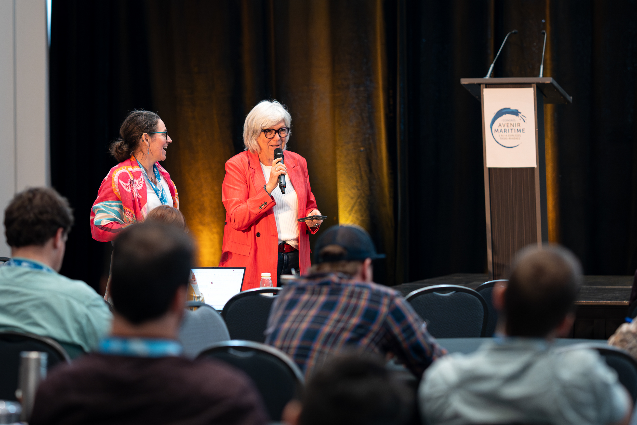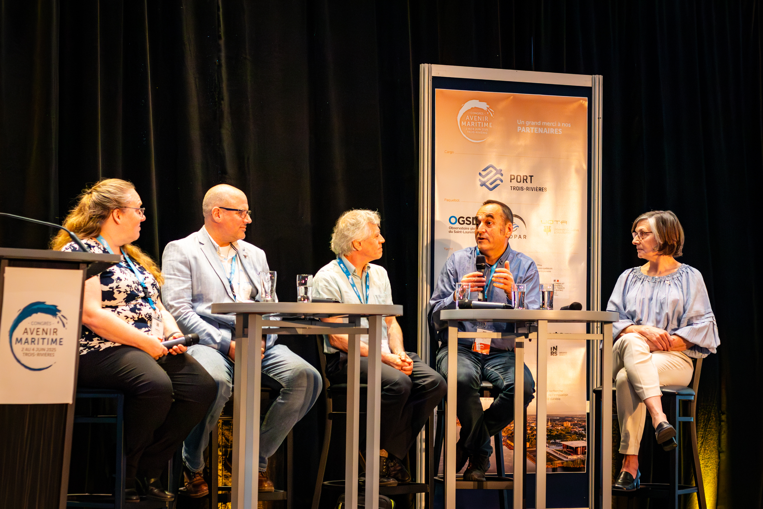 Le congrès Avenir maritime 2025, organisé en partenariat avec le Port de Trois-Rivières, a une fois de plus réuni des scientifiques, des décisionnaires, des artistes, des membres de la communauté côtière et de la relève de tous horizons autour d’enjeux concrets: climat, pêche, transport maritime et logistique portuaire, technologies, résilience côtière, et plus encore. Inspirée par des panels dynamiques, des projets innovants, des discussions transatlantiques et des initiatives à la croisée des arts et des sciences, notre communauté continue d’imaginer l’avenir maritime du Québec et d’ailleurs.
