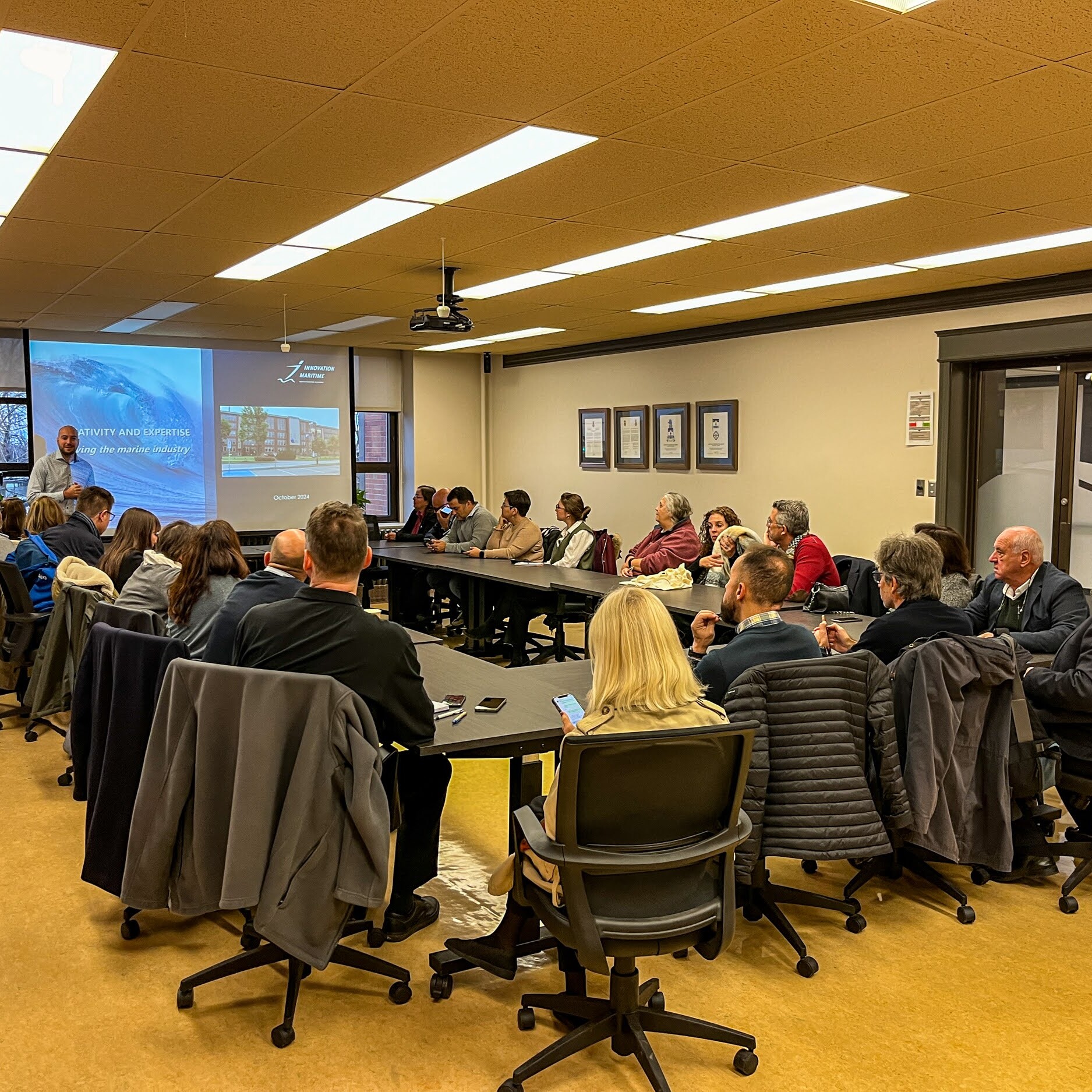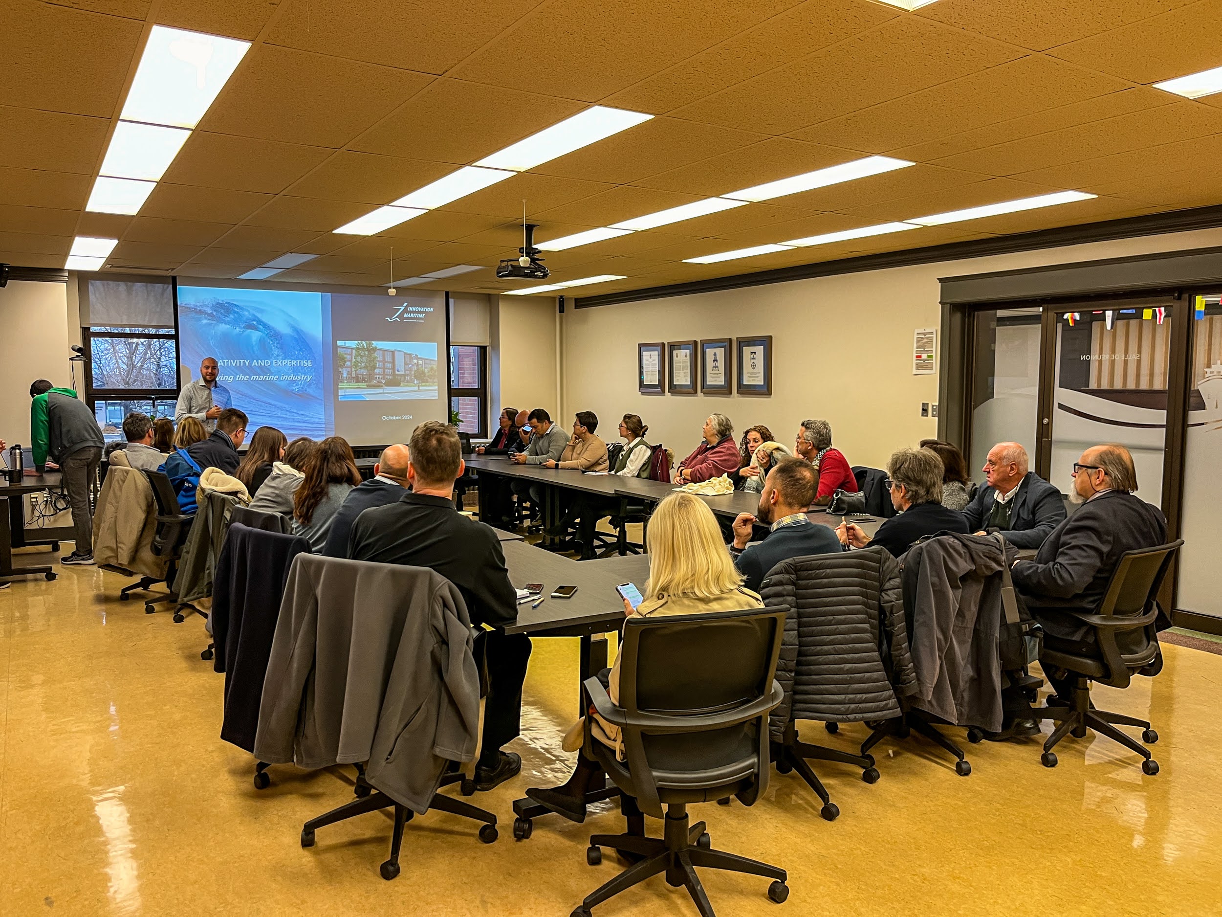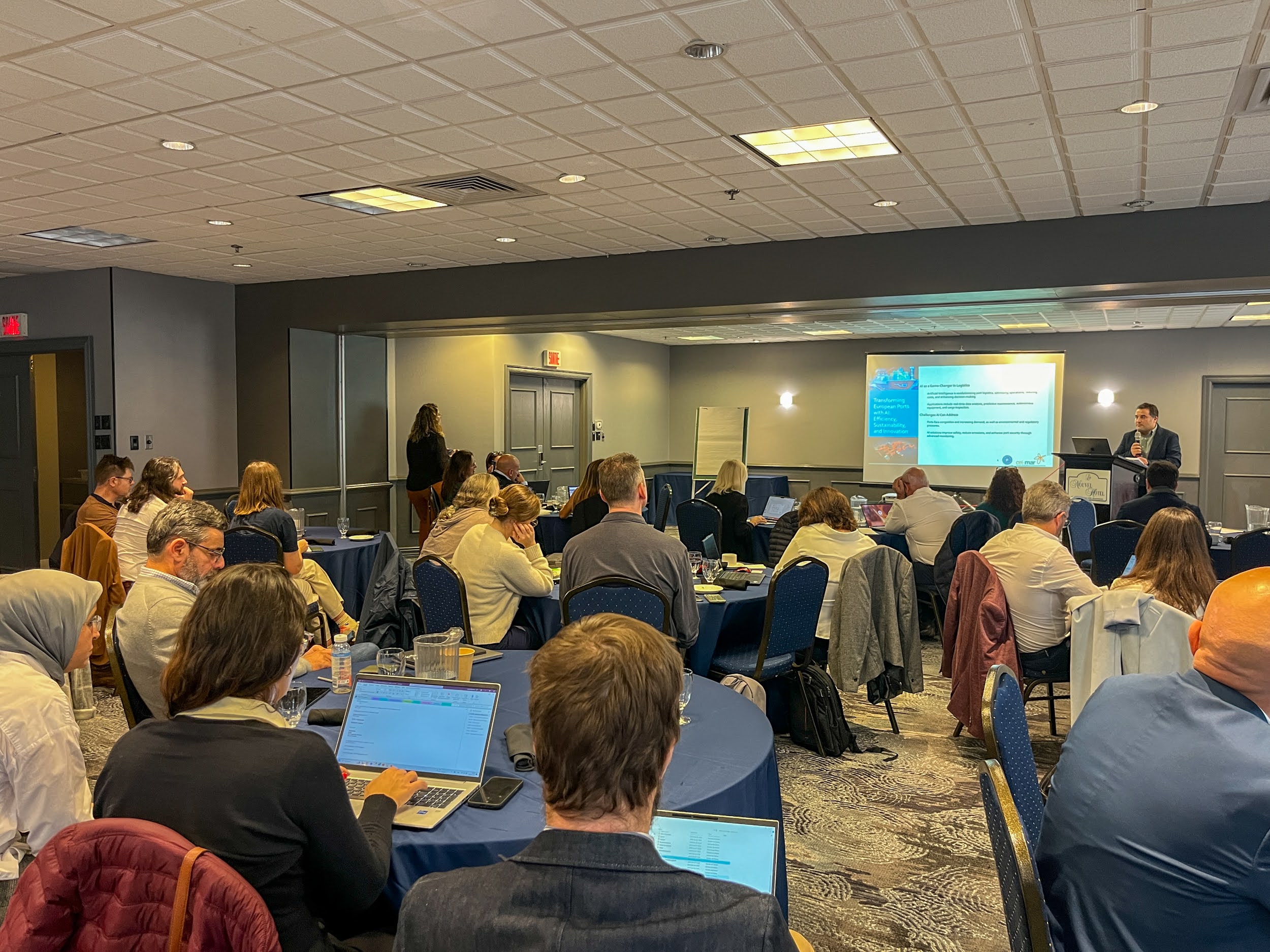 La mission s’est conclue à Montréal avec un focus sur l’intelligence artificielle (IA) appliquée au secteur maritime. Des startups comme Whale Seeker et Oneka, ainsi que des centres de recherche tels que le Mila, IVADO et le Réseau de recherche en économie circulaire du Québec, ont présenté leurs initiatives phares et partagé leurs perspectives de développement d’une IA responsable. Des projets de recherche novateurs visant à optimiser la logistique portuaire et le transport maritime grâce à l’IA ont été présentés par Loubna Benabbou (UQAR) et Jean-François Audy (UQTR). Ces échanges et discussions ont généré des idées, renforçant l’optique que la collaboration technologique transatlantique pourrait jouer un rôle clé dans la transformation durable du secteur maritime.