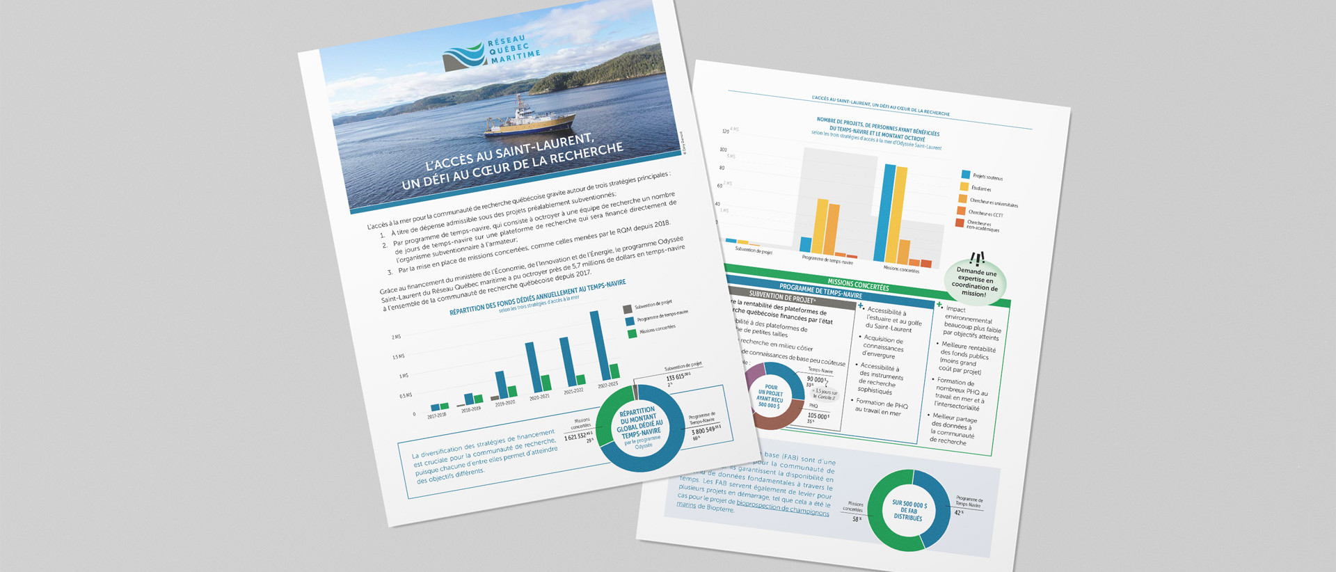 À bord des trois plus importants navires de recherche québécois, le Coriolis II, le Lampsilis et le NGCC Amundsen, ce sont des dizaines d’équipes provenant d’institutions de recherche variées qui offrent à toute la communauté un portrait complet et actuel de ce constituant majeur de l’identité socio-culturelle québécoise.